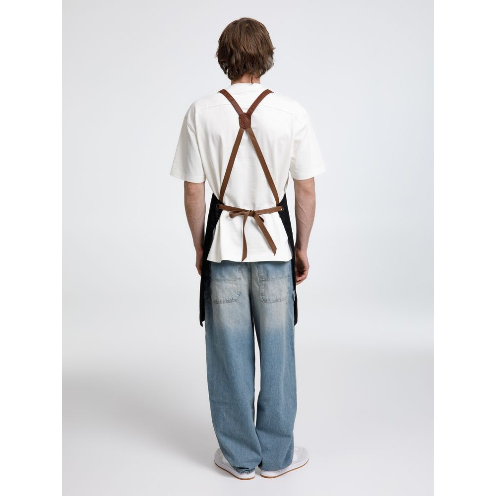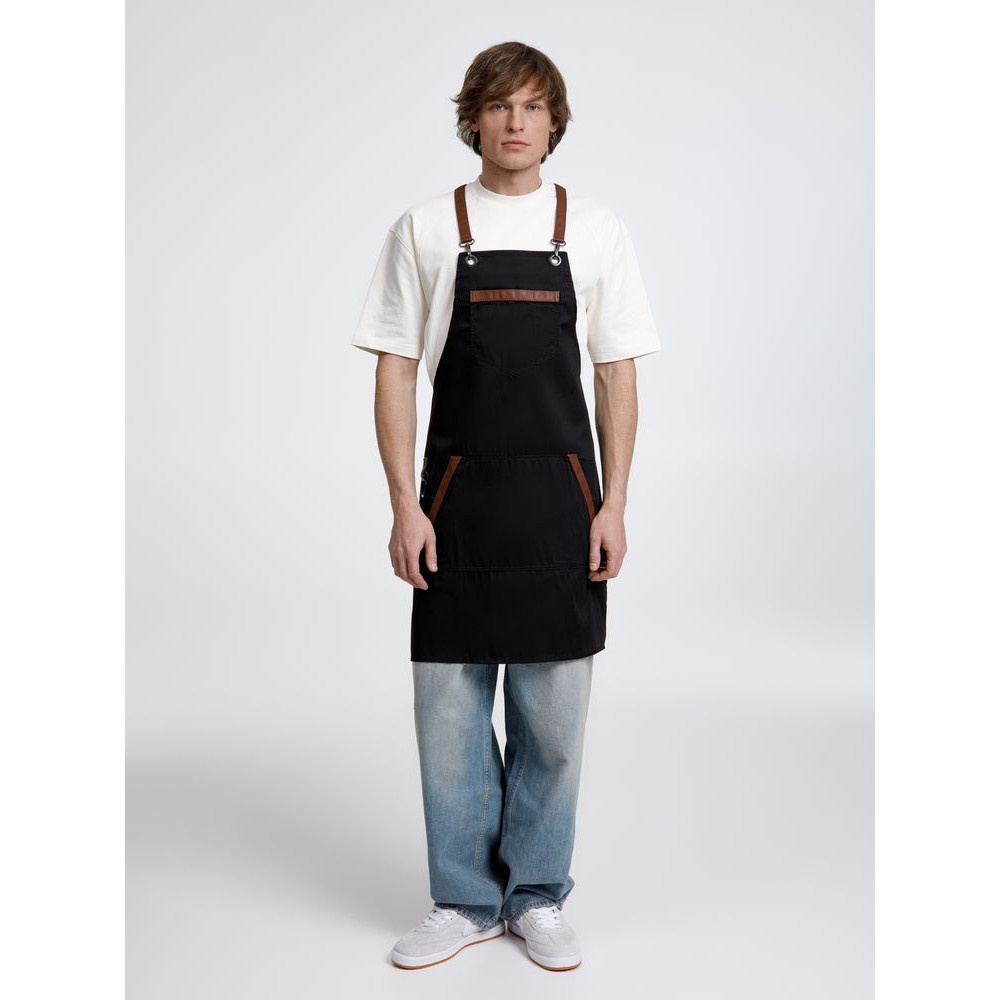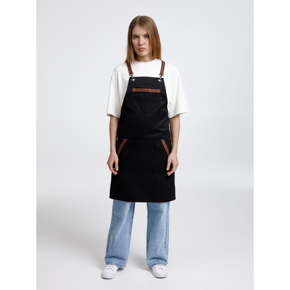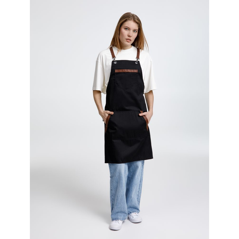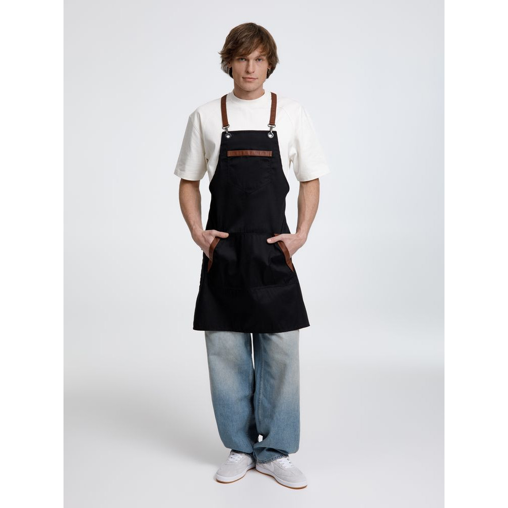 Функциональные карманы на груди и подоле эффектно украшают фартук, изготовленный из качественной дышащей плотной износостойкой ткани. Благодаря динамичным крестообразным лямкам он отлично сидит как на мужской, так и на женской фигуре. Кроме того, съемные лямки упрощают процесс стирки в стиральной машине.