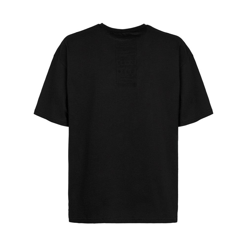 Принт с информацией о бренде и инструкцией по уходу за изделием на изнаночной стороне футболки.