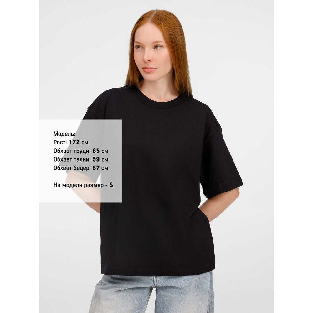 Футболка оверсайз унисекс с круглым вырезом и без боковых швов. Выполнена из смеси переработанного и обычного хлопка. Благодаря повышенной плотности отлично держит форму.