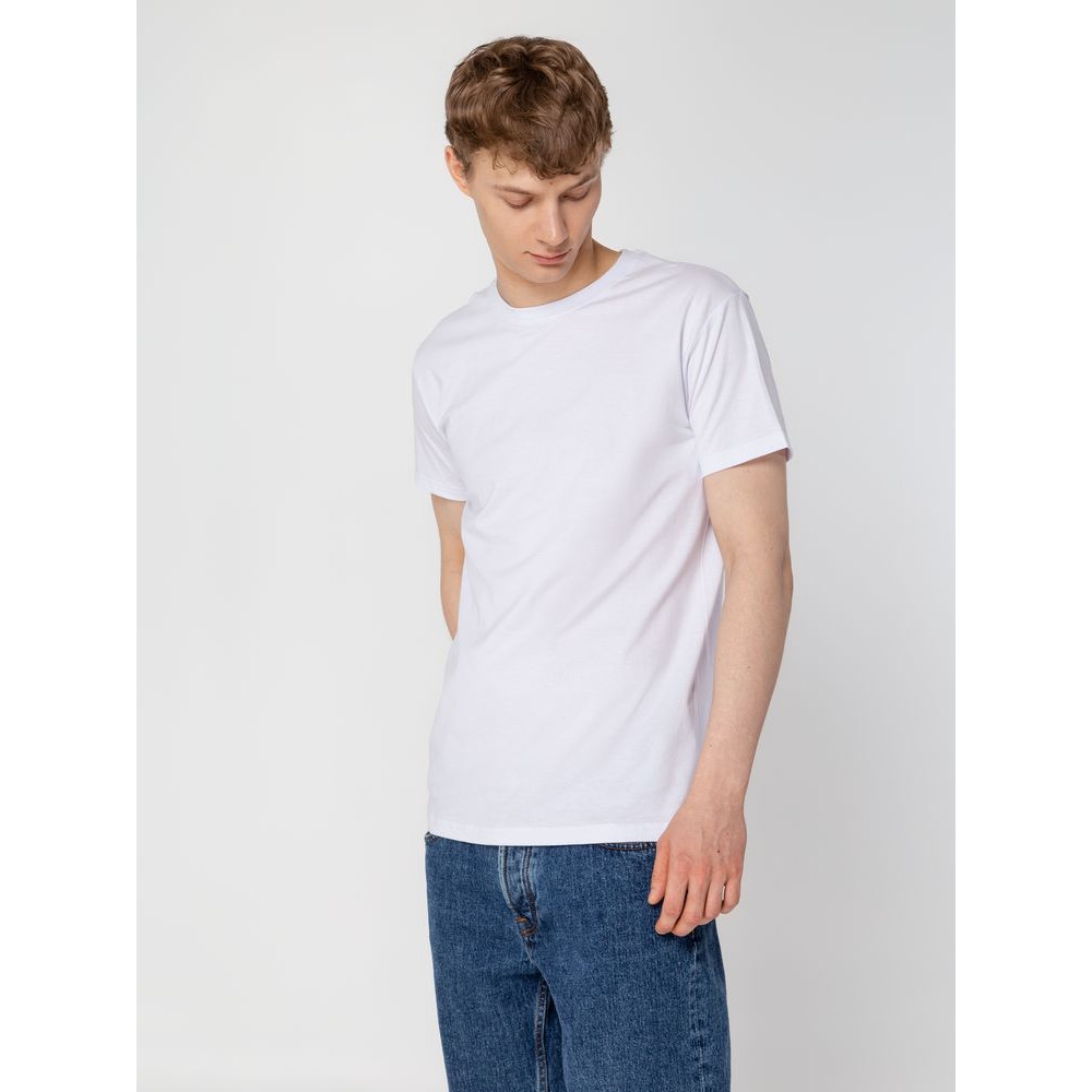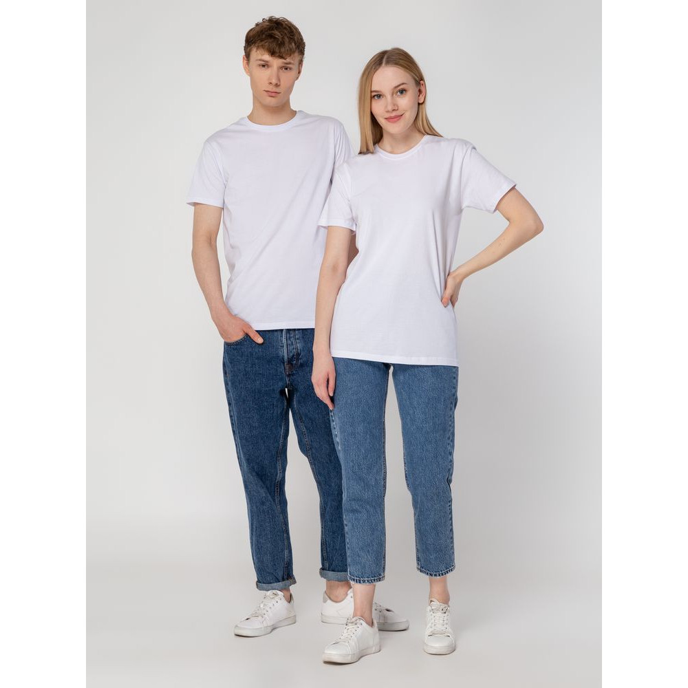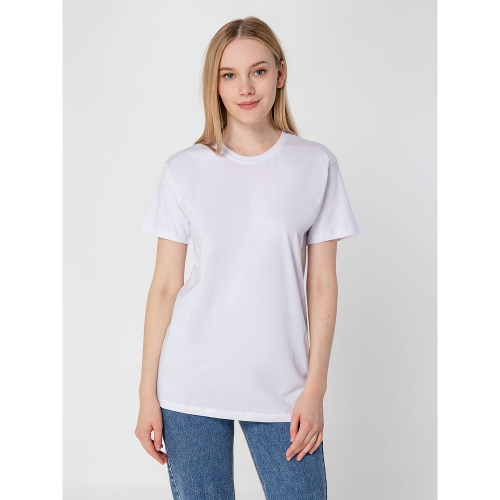 Базовая футболка унисекс прямого силуэта без боковых швов (размеры XS–4XL) или с боковыми швами (размеры 5XL–6XL).