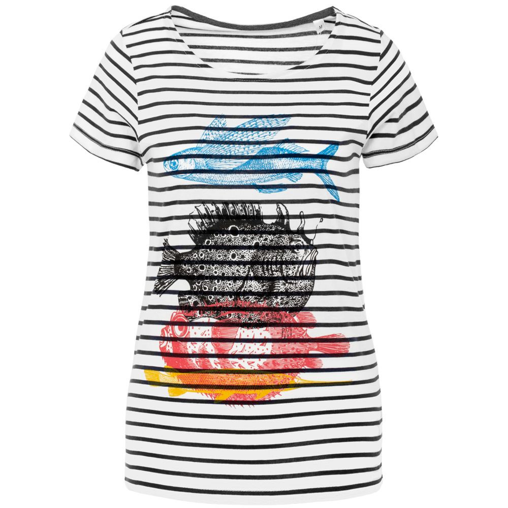 Футболка женская «Морские обитатели», белая с темно-синим