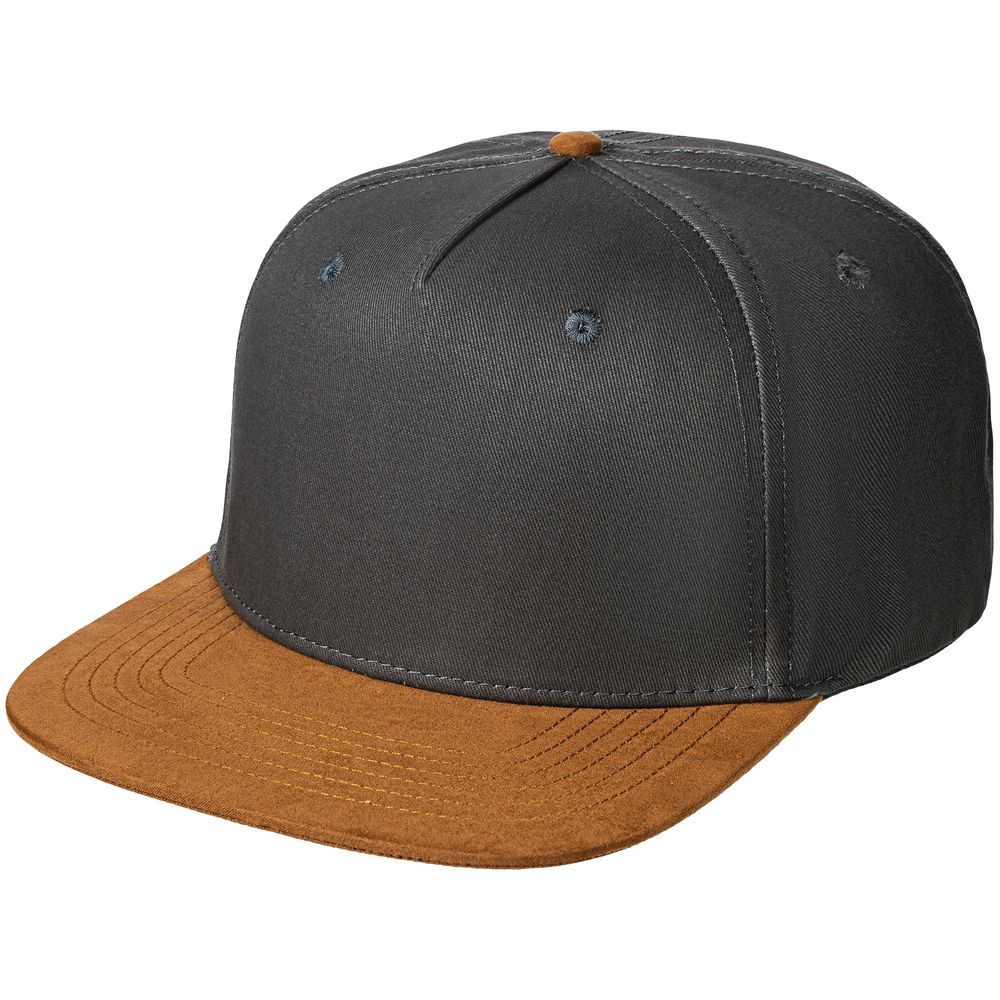 Бейсболка Foreside с прямым козырьком, серая с коричневым