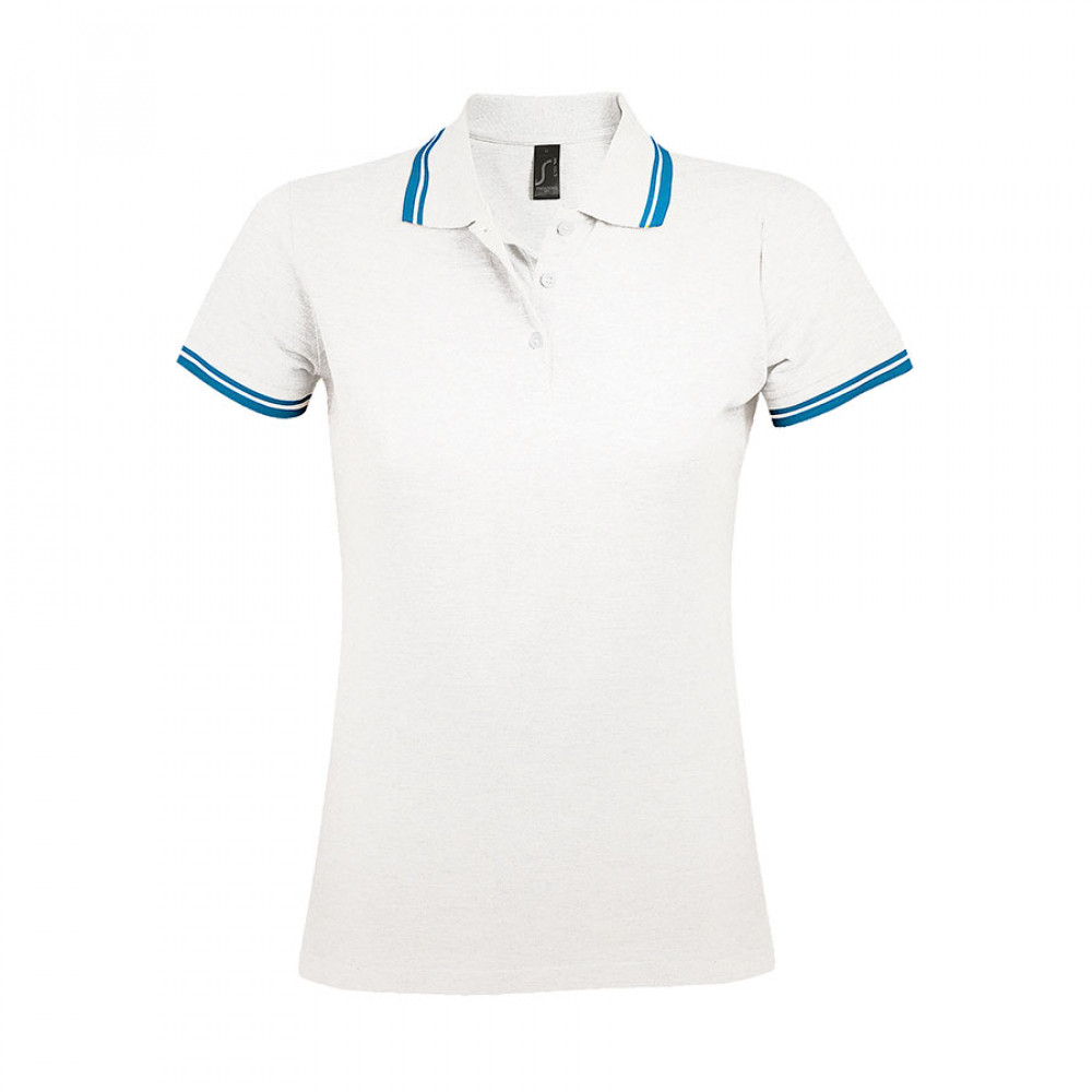 Параметры: Поло "Pasadena Women" белый, голубой__S, 100% х/б, 200г/м2