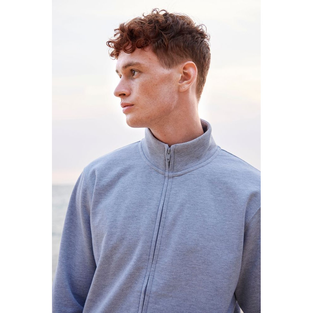Толстовка унисекс на молнии без капюшона выполнена из хлопка с добавлением переработанного полиэстера.