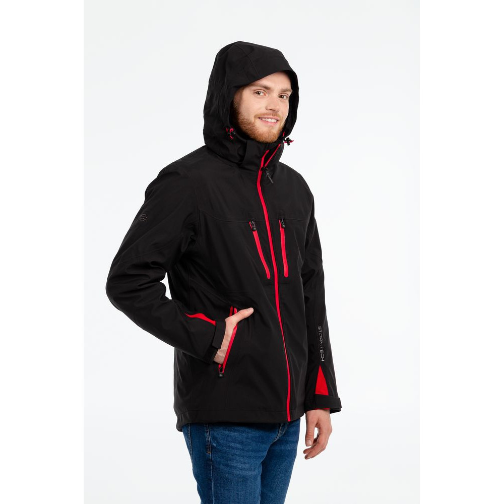 Ветровка из мембранной ткани H2Xtreme снаружи — дышит, но не пропускает влагу. Анатомический крой локтя обеспечивает максимальную свободу движений, а полностью проклеенные швы создают водозащитную капсулу. Внутренний слой — куртка с утеплителем — обладает надежной теплозащитой и удобно крепится к ветровке с помощью молний.
