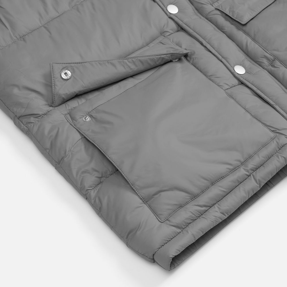 - Утепленные накладные карманы: два на кнопках с вертикальным входом и два с боковым — итого 4 кармана
