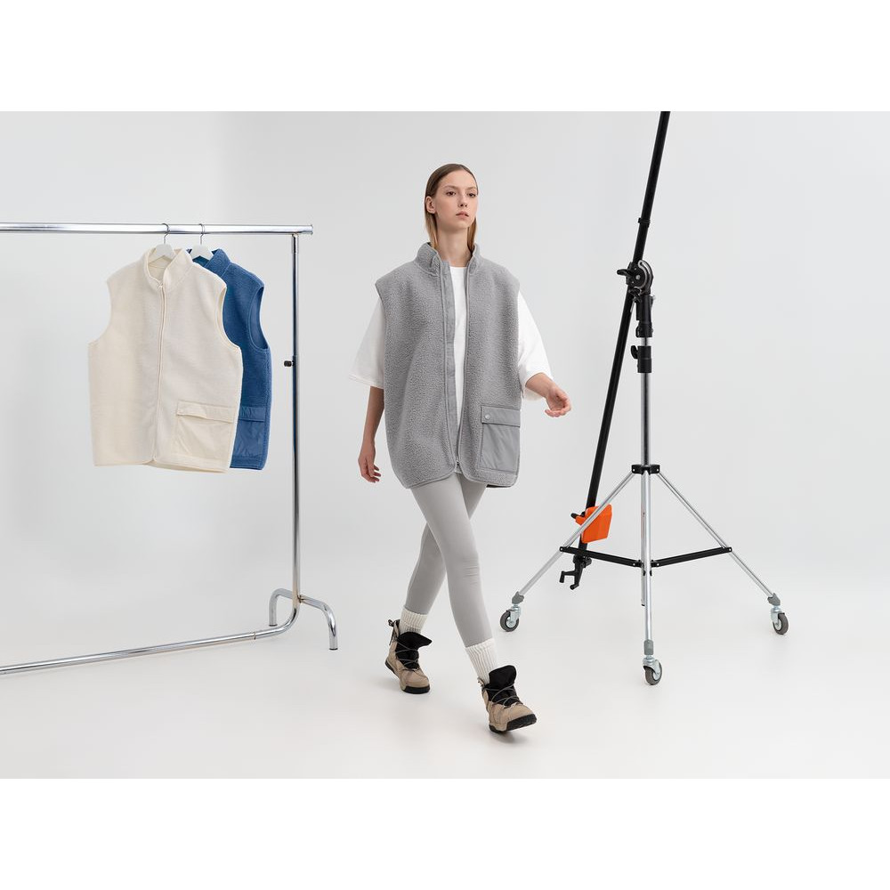 Жилет на молнии из современного двухслойного материала — модный искусственный мех снаружи и уютный флис внутри. Накладной карман из гладкого нейлона создает заметный визуальный контраст и делает жилет Oblako по-настоящему стильным предметом гардероба.