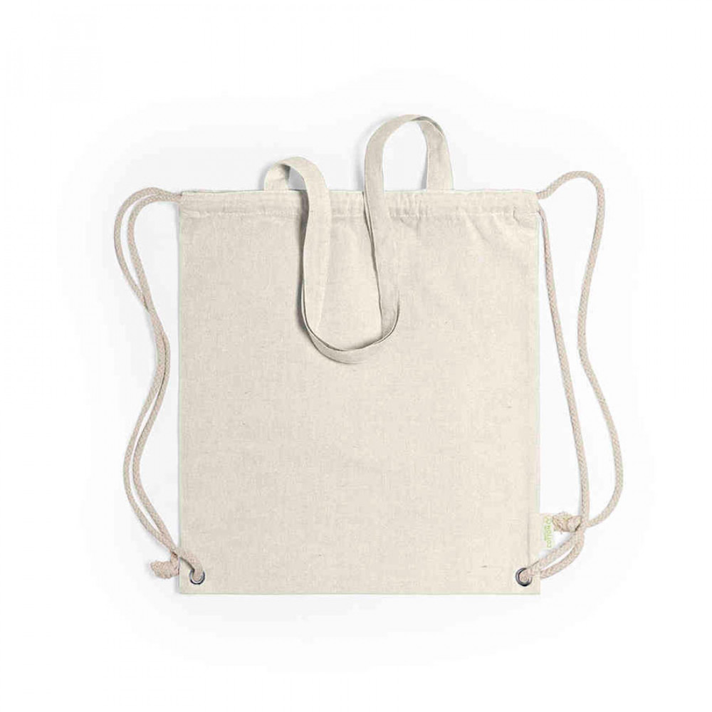 Сумка-рюкзак для покупок выполнен из 100% переработанного хлопка, плотностью 140 г/м2.