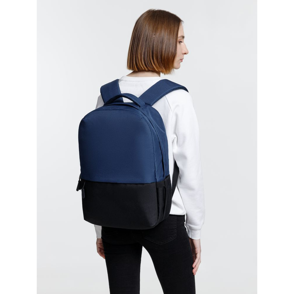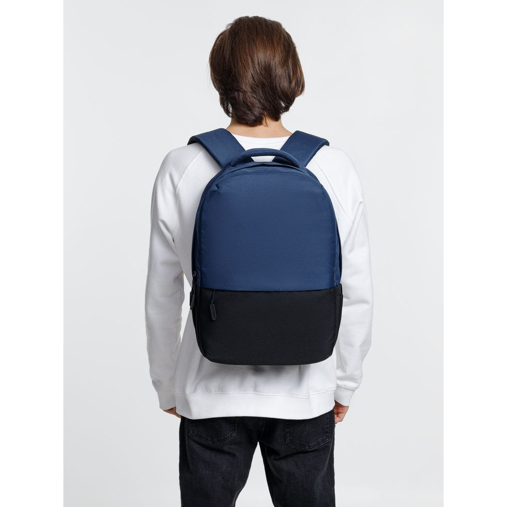 Двухцветное исполнение с темным низом и более светлым верхом, с одной стороны, помогает рюкзаку дольше сохранять опрятный внешний вид, а с другой — позволяет активнее и контрастнее выделить логотип компании.