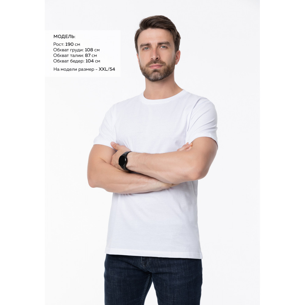 Размер мужской футболки: XXL/54. Параметры модели: рост 190 см.; обхват груди 108 см.; обхват талии 87 см.; обхват бедер 104 см.