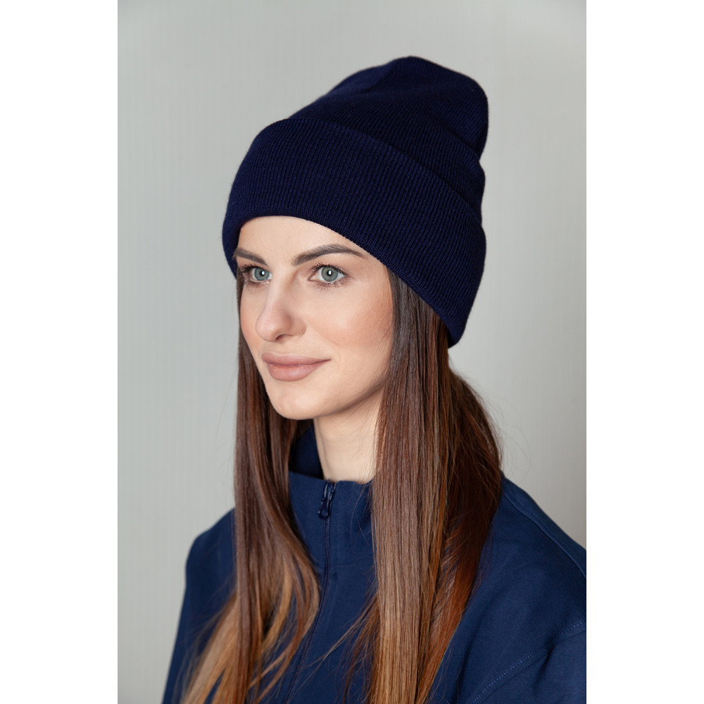 Теплый и мягкий на ощупь акрил двухслойной вязки 1*1, из которого выполнена шапка, сохраняет яркость цвета и форму изделия.
