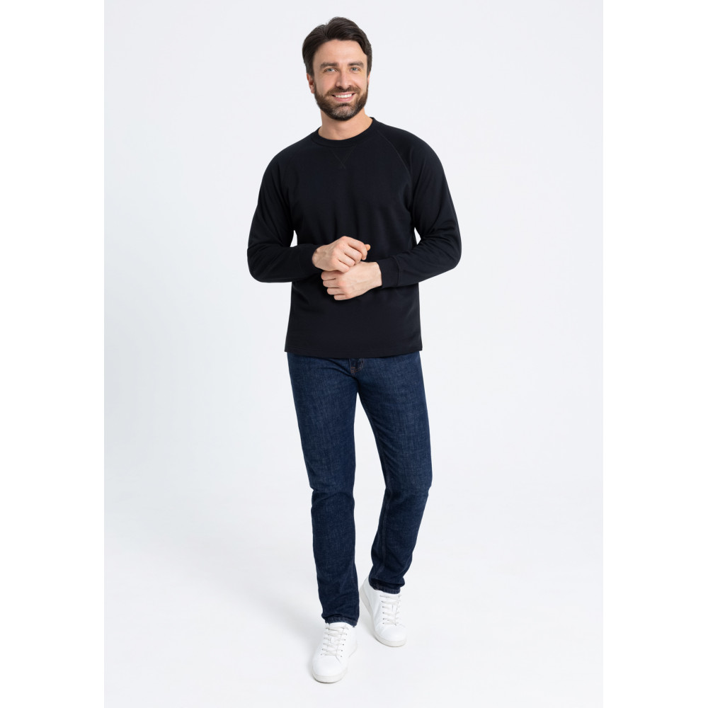Модель выполнена из плотного хлопкового футера, который хорошо удерживает тепло, обеспечивая комфорт в прохладную погоду. Материал устойчив к механическому воздействию и вытяжению, практически не поддается пилингу.