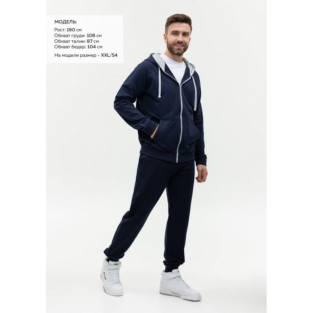 Размер мужской толстовки: XXL/54. Параметры модели: рост 190 см.; обхват груди 108 см.; обхват талии 87 см.; обхват бедер 104 см