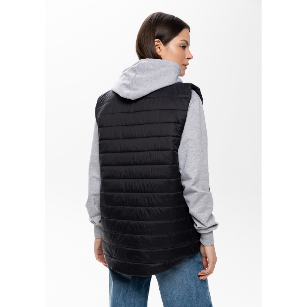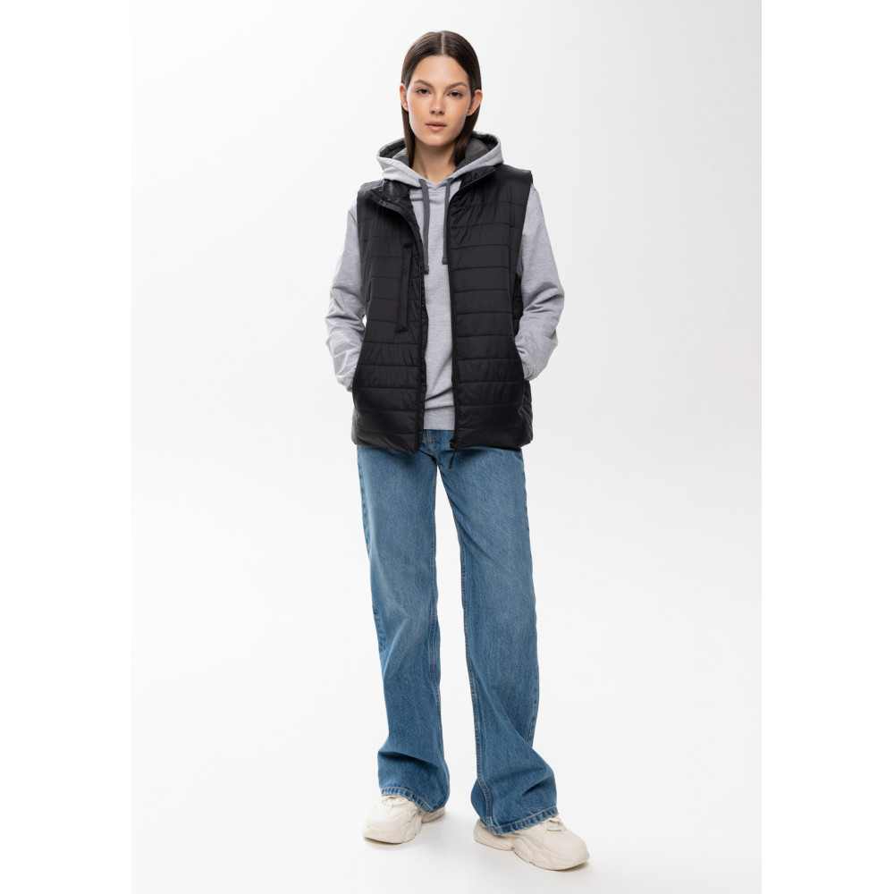 Ультралегкий жилет прямого силуэта с горизонтальной стежкой, воротником-стойкой, функциональным карманом по правой полочке, прорезным карманом и застежкой на молнию с внутренней ветрозащитной планкой. В комплекте прилагается сумка-чехол (технологии нанесения: шелкотрансфер и DTF-печать).