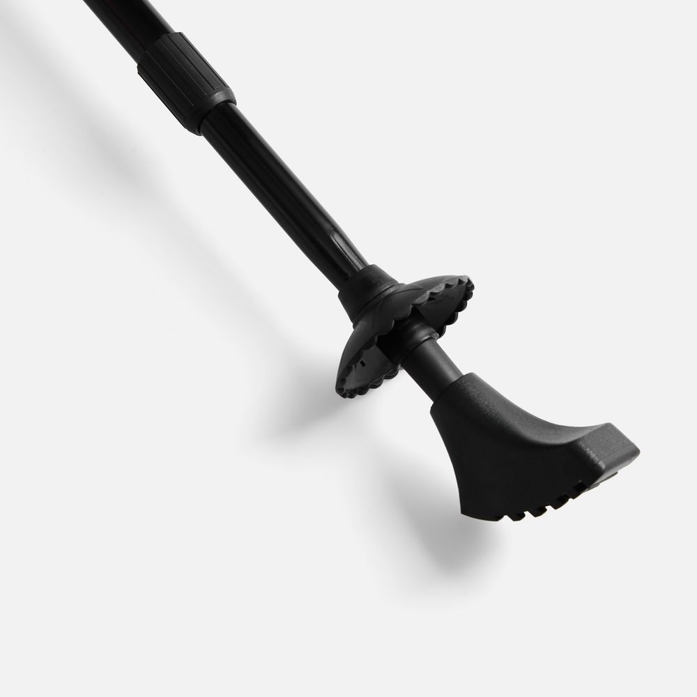 - Заостренный наконечник из стали с комплектом насадок для ходьбы по асфальту («сапожок»), песку, снегу, мягкому грунту («кольцо») или пересеченной местности («упор»)