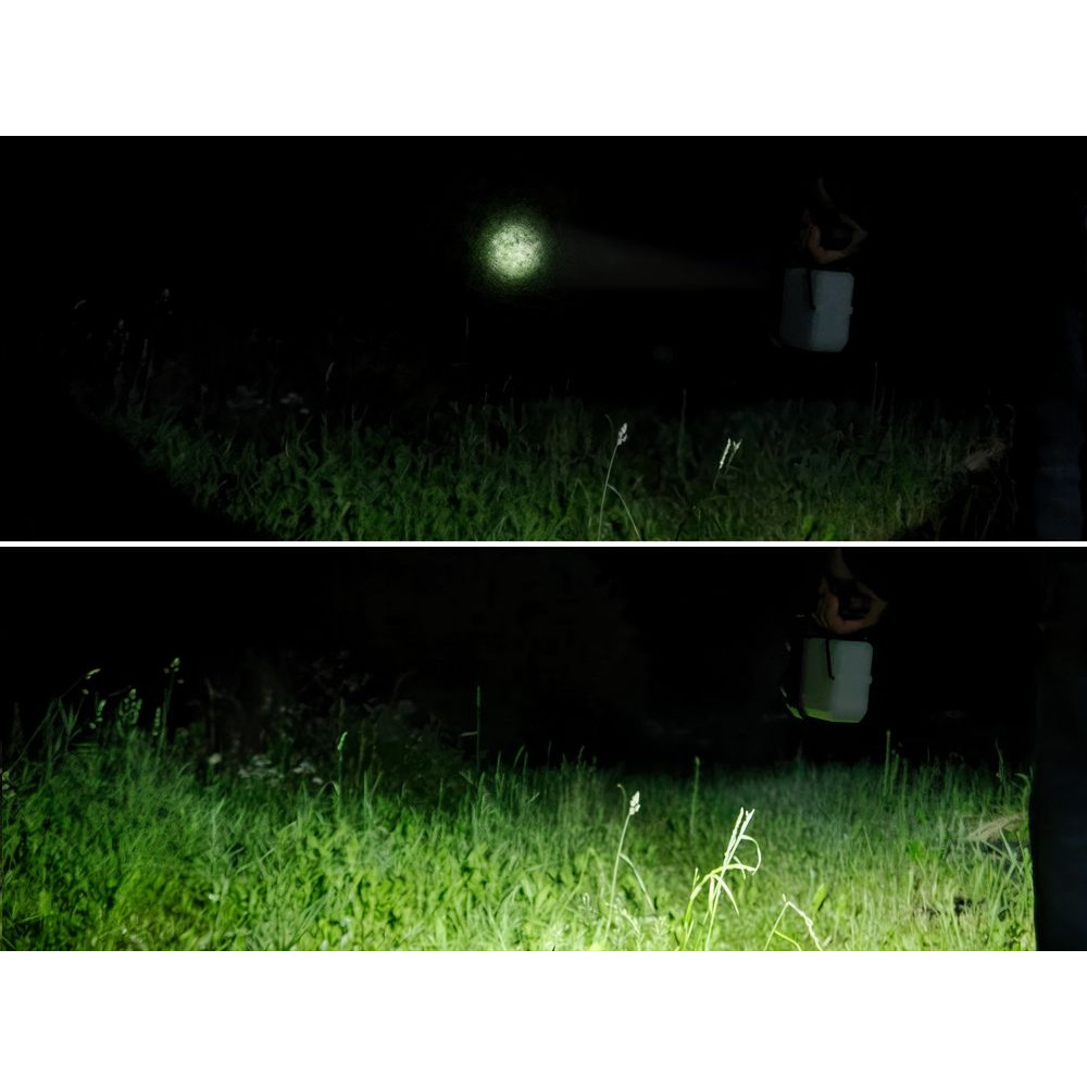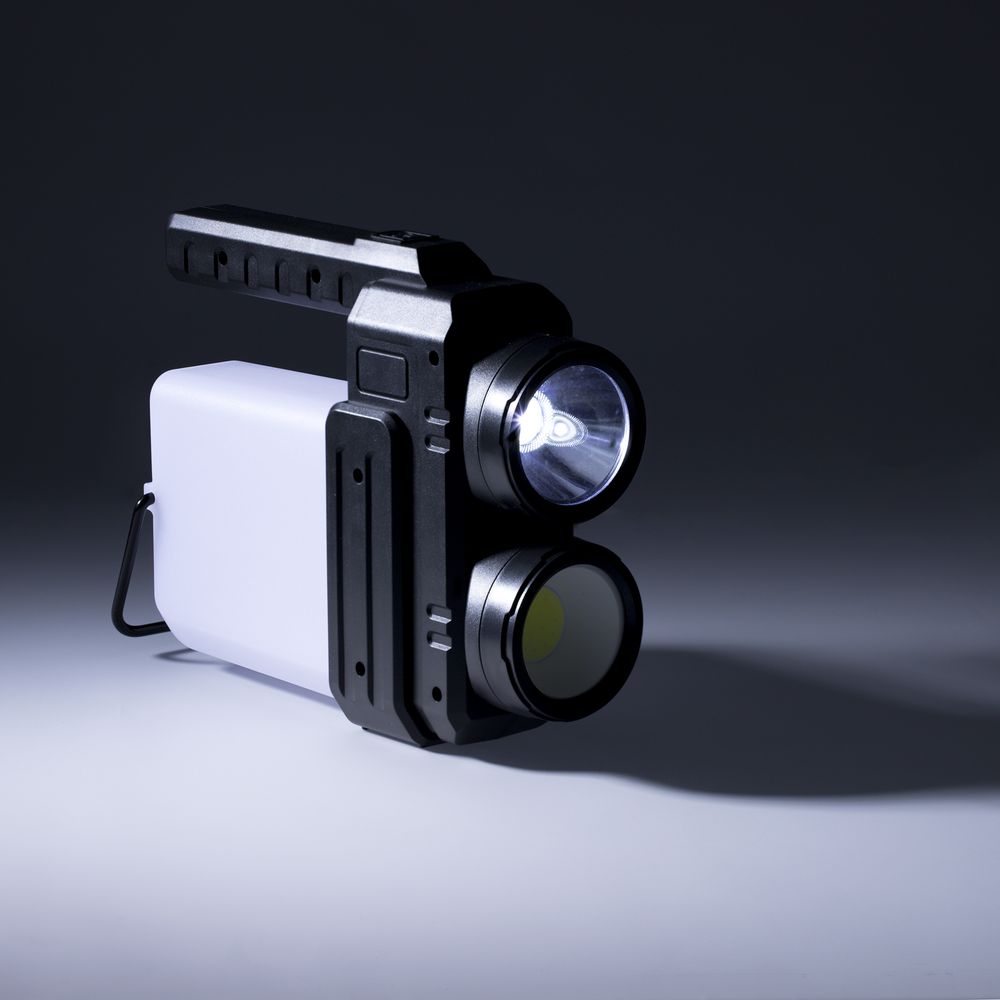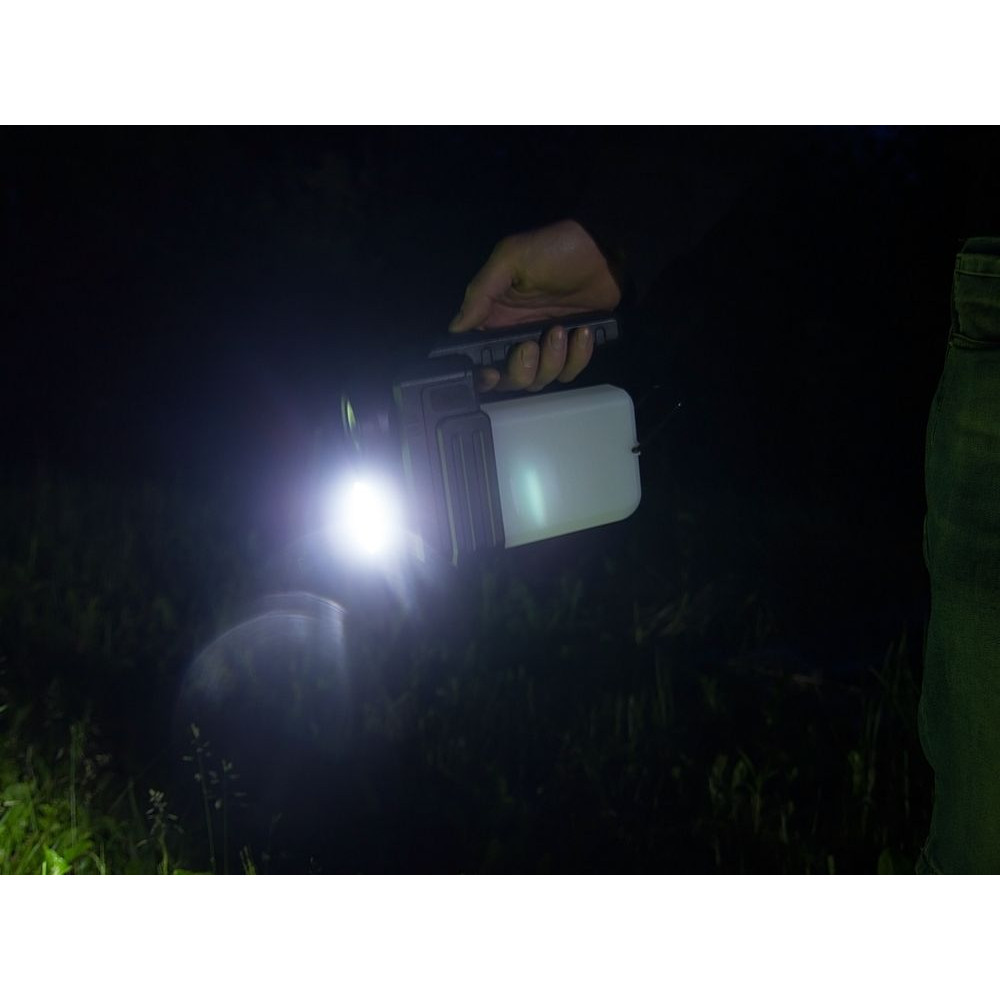 - Рассеянный луч света — светодиод COB мощностью 400 лм, дальность светового луча до 25 м, время работы до 4 ч